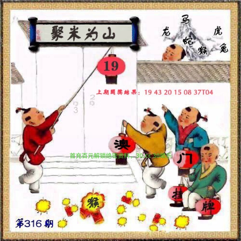 | 316期:九肖【马虎鸡猴兔狗羊龙猪】开:马24准 |